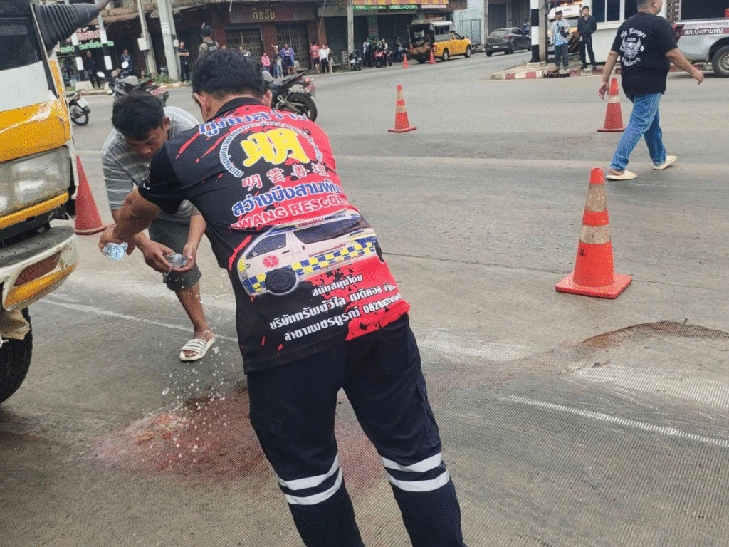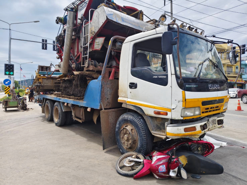 นอกจากนี้ บริเวณล้อหน้าของรถบรรทุกสิบล้อ ยังพบรถจักรยานยนต์สีแดงสภาพพังยับเยิน และพบร่างผู้เสียชีวิตเป็นหญิง 1 ราย ทราบชื่อคือ นางธนพร อายุ 67 ปี ถูกล้อรถเหยียบศีรษะ เสียชีวิตในที่เกิดเหตุ