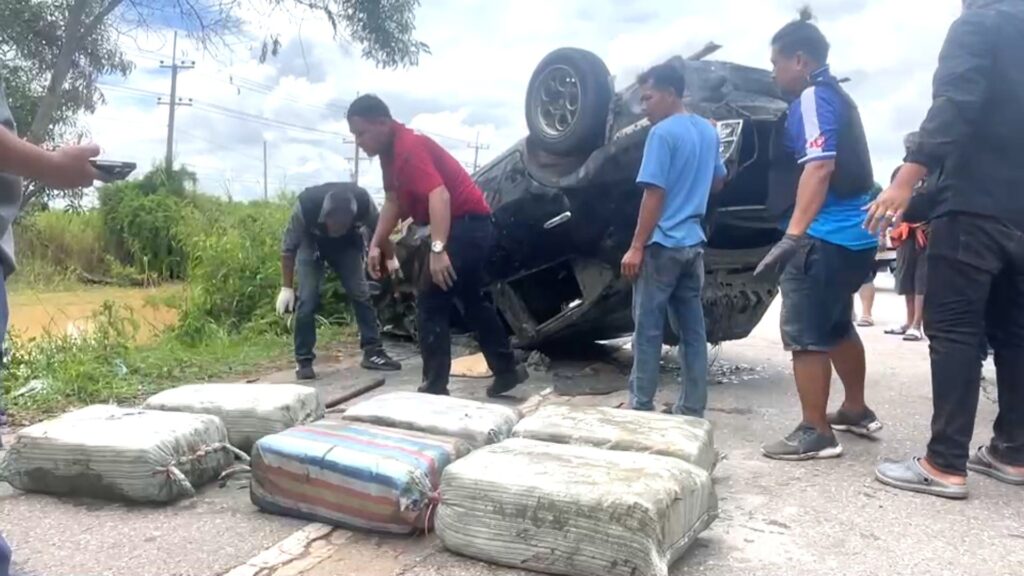 เหตุเกิดบนถนนเลี่ยงเมืองหมายเลข 111 พิจิตร–เนินสมอ ตำบลป่ามะคาบ อำเภอเมืองพิจิตร เจ้าหน้าที่แสดงตัวเข้าตรวจรถเก๋งนิสสัน สีดำ ทะเบียน กท-713 กำแพงเพชร แต่ผู้ต้องหาพยายามเร่งเครื่องหลบหนี จนเกิดการไล่ล่าต่อเนื่อง สุดท้ายรถเสียหลักตกคูน้ำหงายท้อง เจ้าหน้าที่และหน่วยกู้ภัยสรรเพ็ชญ์พิจิตรเข้าช่วยเหลือผู้ต้องหาที่ติดภายในรถ ได้รับบาดเจ็บทั้งคู่