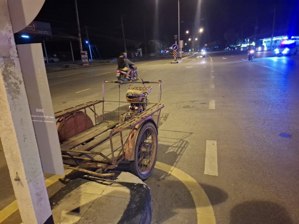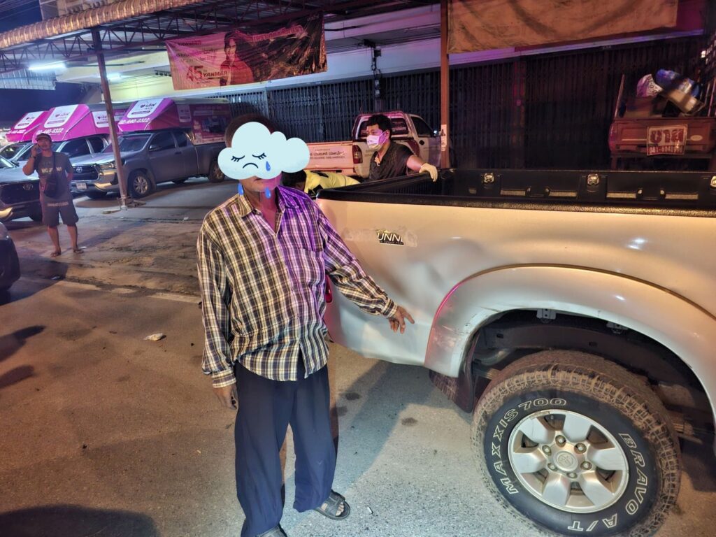 จากการตรวจสอบในที่เกิดเหตุ พบรถจักรยานยนต์สามล้อขับสวนเลน พุ่งตัดหน้ารถกระบะอีซูซุ สีบรอนซ์เงิน ที่กำลังขับกลับบ้าน ทำให้คนขับรถกระบะตกใจหักหลบกะทันหัน รถจึงข้ามเลนไปชนกับรถกระบะโตโยต้า สีบรอนซ์เงิน ซึ่งจอดอยู่ข้างทาง